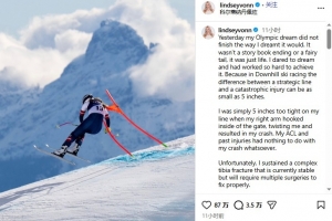 今日,林赛·沃恩在Ins上发文告别冬奥会,原文如下: