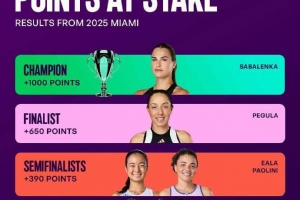 体育资讯3月13日讯 WTA官方盘点了WTA1000迈阿密站的保分情况,其中卫冕冠军萨巴伦卡需要保住1000分,中国选手郑钦文、波兰名将斯瓦泰克需要保住八强的215分。