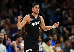 此役,布克出战32分半,投篮17中6,三分7中3,罚球3中2,得到19分4篮板6助攻2抢断。