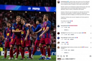 “我们已经倾尽全力,但这次还是不够。对于球队、俱乐部以及我们的球迷来说,这是一个艰难的时刻,因为这项赛事对我们意义重大。我们在欧冠的征程到此结束,但这支球队才刚刚开始一段特别的旅程。我们会学习,会成长,并且将以更强的姿态归来。感谢每一位在每一步都支持我们的人。我们感受到了你们的热情和信任,我们将继续努力,为这个俱乐部带来欢乐和荣誉。为能身披这身球衣而感到自豪,为能成为这支球队的一员而感到自豪。永远的巴萨 💙❤️ ”